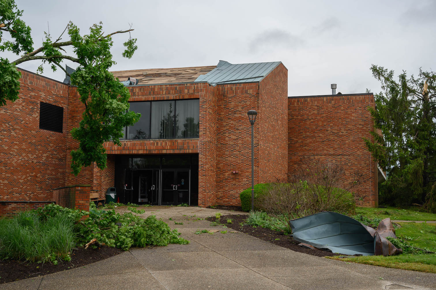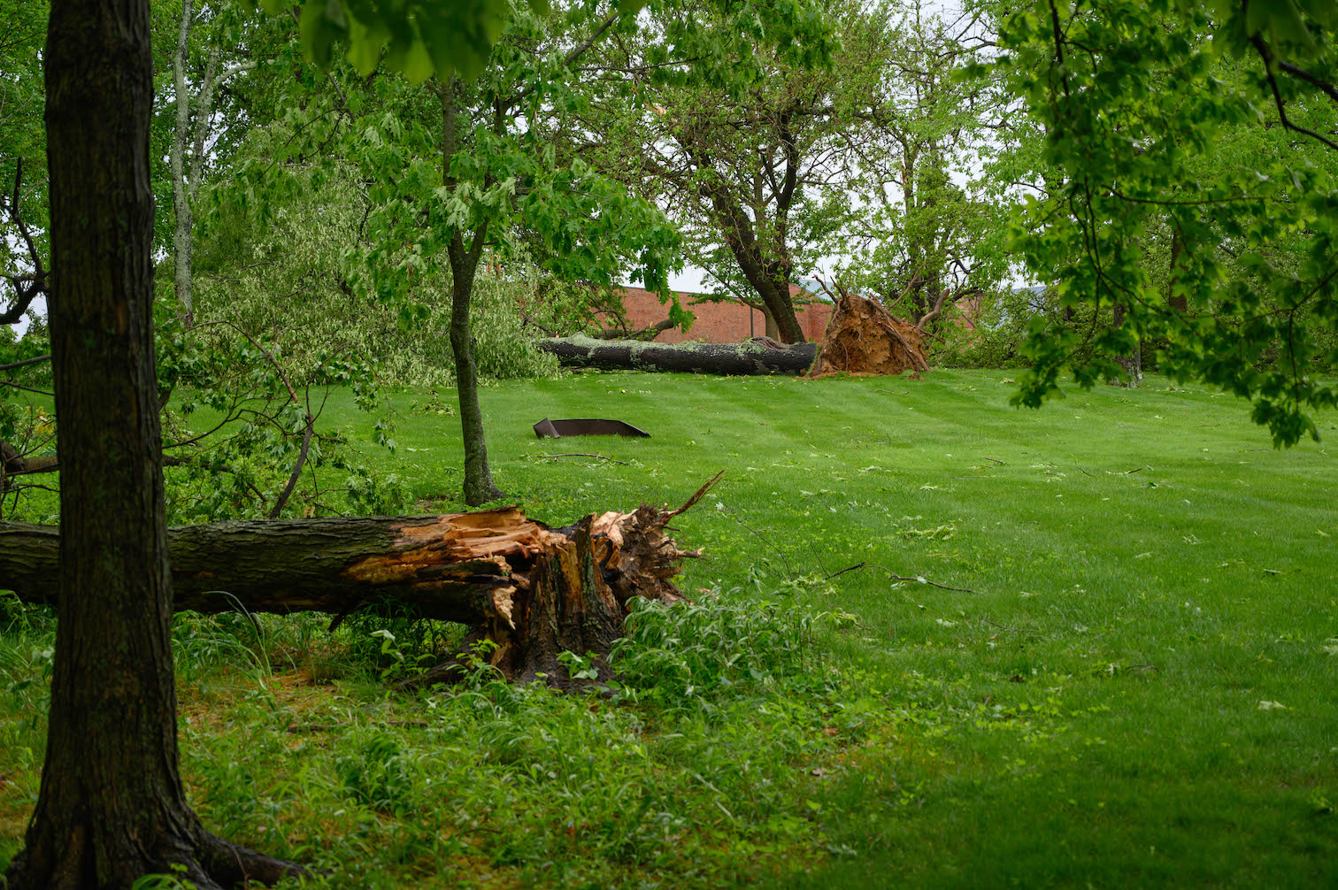 I walked further north and west to see the other end of campus, and I was struck to see there was little damage on that end of campus. It became clear the damage was focused on a relatively small part of campus around my building. I didn't notice at first, but the downed trees were pointing in different directions. I was not surprised to learn later that afternoon that the National Weather Service had determined we had an EF1 tornado with 105mph winds.